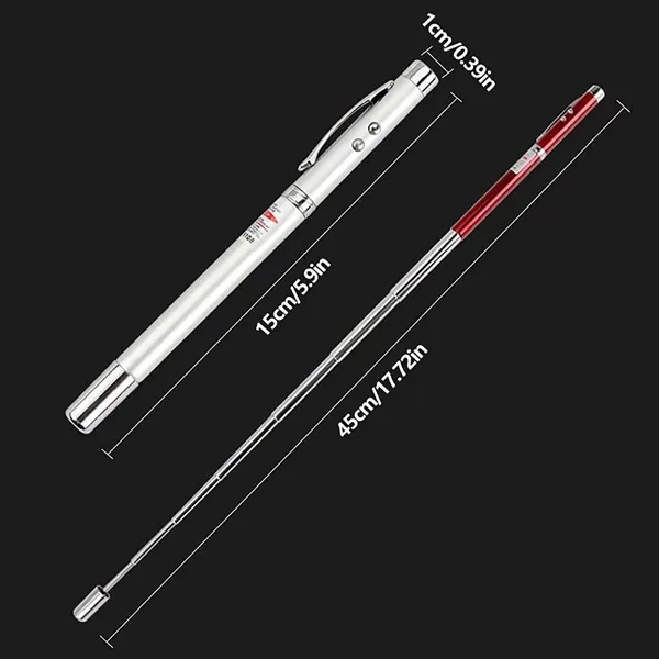 Description:Our electronic telescopic laser pointer pen is perfect for both classroom teaching and keeping your pets entertained! This versatile tool lets your kitten unleash its hunting instincts, enhancing exercise and reducing anxiety. Made from high-quality metal alloy with an anti-slip design and pen clip, it’s lightweight and comfortable to hold. The simple key switch design allows for easy use—press to power on, release to power off. Keep your pets active and curious, while also having a handy pointer for meetings and presentations.