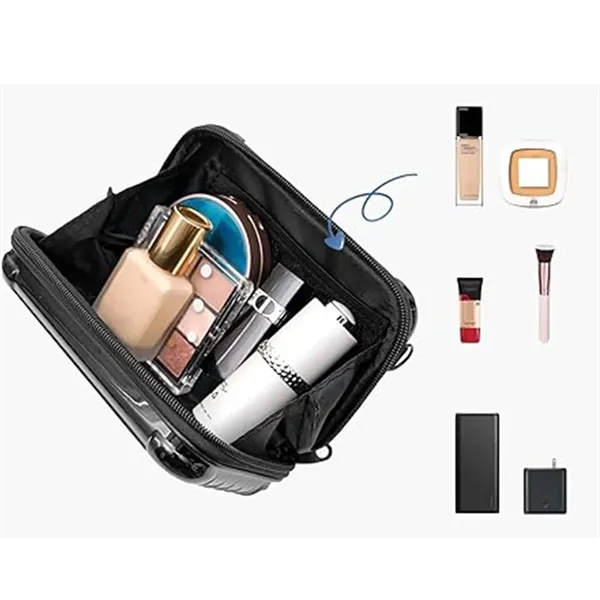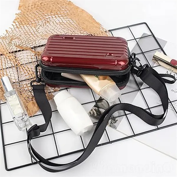 Description:This travel makeup suitcase, made of high-quality ABS and PC, is environmentally friendly. Durable, waterproof, scratch-proof, and easy to clean.6.9(L)*4.1(W)*2.3(H), 0.39Ibs, the reduced version of the suitcase can satisfy the sense of ritual of your travel, small size, large capacity, the bag can perfectly store your lipstick, keys, mobile phone, bank card, ID, glasses and other daily necessities.We adopt the scientific structure design to maximize the use space in the makeup bag, 1* main bag, 2* mesh bag, reasonable internal partition makes your makeup bag cleaner and easier to store.This mini suitcase has a unique design structure with letter straps and hand straps. You can use as shoulder bag, makeup bag, storage bag, travel bag, etc., to meet your diverse needs.