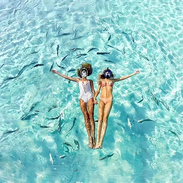 Description:Updated full-face design provides a larger viewing area, guaranteeing that you will see more fish and sea creatures than ever before. With our detachable camera mount you can easily attach your camera to capture and share your adventure with friends and family.Comes with a tote-able mesh bag, being convenient to package and take it anywhere you want. With multiple colors and 2 different sizes ( S/M, L/XL ) to choose from you can always find one that fits your face and personality perfectly.Full face snorkeling mask is easier to use than traditional diving mask and more friendly to kids, the camera mount enables you to install Gopro and records the dreamlike underwater world, it’s a perfect present to kids; use this sports snorkel mask and enjoy unforgettable vacation.