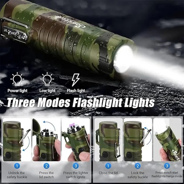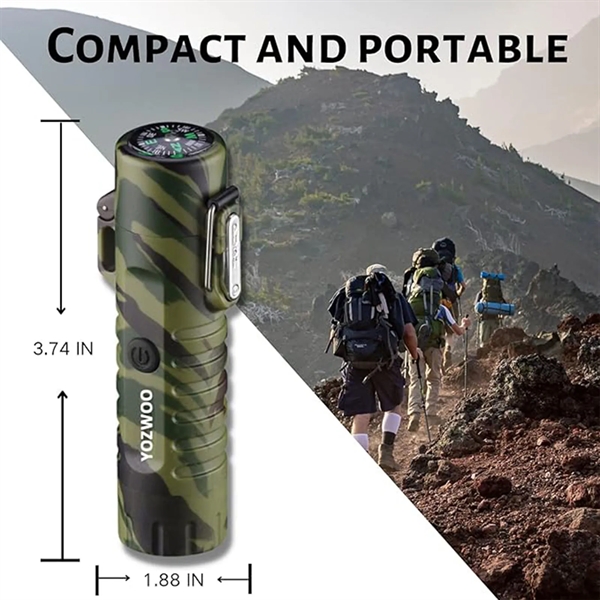Description:Never be caught unprepared with our Flashlight Lighter for home and outdoor use, combining a powerful electric lighter with a 3-mode flashlight (strong light, low light, flashing). Made from high-quality ABS and zinc alloy, it features a sealed lid and metal buckle design, achieving IP56 waterproof rating. It performs reliably in rainy or windy conditions. The all-weather magnesium ferro rod makes it ideal for emergencies, camping, hiking, and survival. Compact at 3.7 x 0.98, it includes a built-in lithium battery, lanyard, and USB charging cable, fully charging in just 2 hours. This flameless lighter is easy to use and carry, perfect for both indoor and outdoor activities.