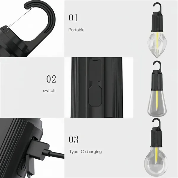 Description:Illuminate your next camping adventure! Our rechargeable camping lights, crafted from high-quality ABS, are built to endure the toughest outdoor trips. The durable ABS construction ensures these lights are reliable for camping, hiking, and other outdoor activities. With three illumination modes—High, Middle, and Low—you can customize the lighting to suit your needs. Perfect for setting up a campsite, exploring the wilderness, or enjoying a backyard barbecue, these lights offer versatile lighting options. Say goodbye to disposable batteries! Featuring a built-in rechargeable battery, these lanterns provide a convenient and eco-friendly power solution. Charge them before your adventure for hours of reliable, energy-efficient lighting.