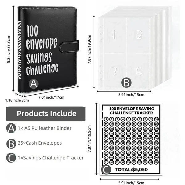 Description:Effectively save money and manage your budget in style thanks to our Savings Challenges Book! Perfect for personal or family use, this budget binder helps you save for various goals like vacations, cars, emergency funds, or debt payoff. Made from soft and sturdy PVC, it protects your files, bills, and cash from damage. The book includes 100 budget binder envelopes and a colorful tracker to monitor your savings. The tracker paper is laminated for reuse, making it easy to track deposits over time. Compact and portable, this cash binder comes with a rich combination of accessories to enhance your budgeting experience.