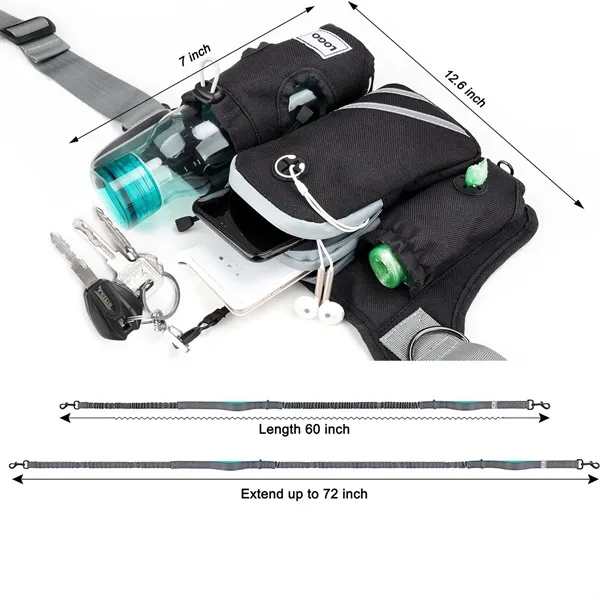 Description:Hands free leash has a durable clip that smoothly slides along the dog running belt so your pup can move easily from side to side. One of the only dog leashes with this feature. Walk, run, or hike In front or beside him without stepping on his paws. The 4 foot lead provides plenty of space and the bungee leash stretches out to 5 feet. A leash for medium dogs and a leash for large dogs that tend to pull. The shock absorbing bungee around the waist allows you to control your pooch from your core. Our double handle dog leash allows you to control him without breaking stride. Perfect hip handle placement to guide your dog back on track, or the collar for direct control.