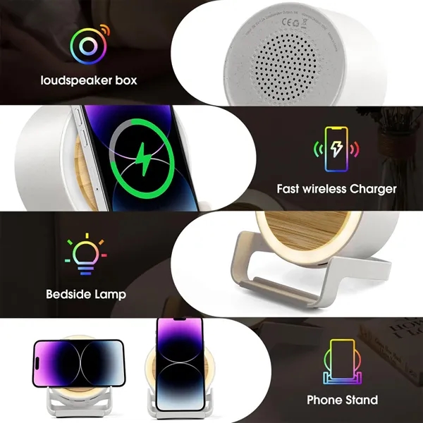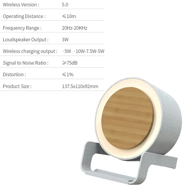 Description:Designed for users of Smartphones with wireless charging protocols. With a built-in wide-range induction coil and wireless charger technology, it brings you an easy and convenient charging experience without the hassle of cluttered wires. this wireless charging device also comes with a Bluetooth speaker with crystal clear sound quality, allowing us to enjoy music or movies while charging our phones. There is also a cool LED light that accompanies the music rhythm.This wireless charger has a touch-switch design LED light that gives you a warm light on dark nights. It has three levels of brightness adjustment to meet your different needs. Protect your night.our wireless charging setup, which supports 15W charging power, allows us to quickly replenish our phone’s power.