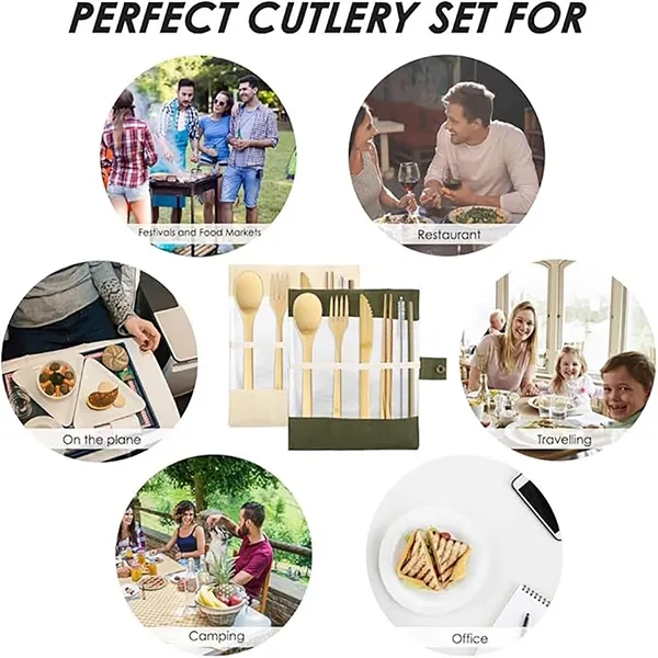 Description:Our bamboo utensils set is completely recyclable and BPA-free. When making the switch to wooden cutlery, you can do your part in reducing plastic waste world-wide. Comes with durable canvas pouch. Easy to storage on your lunch bag, suits the vegetarian meal as well as a fancy picnic to make your meal just a bit more special. Great for get-together, office lunches, formal or informal meals. Our bamboo lunch utensil set is with stylish and natural outlook pairs well with your dinner and serves a wonderful meal in the nature. Perfect bamboo cutlery set for friends, girlfriends, buddy, roommates, parents, kids, husband, wife, teacher at Birthday etc.