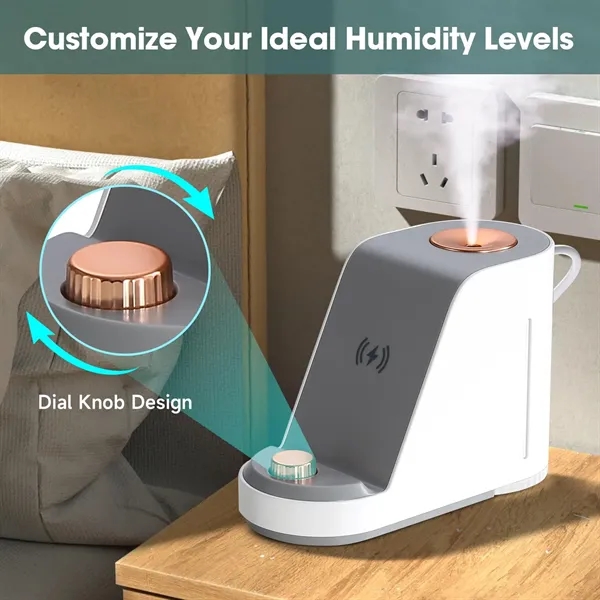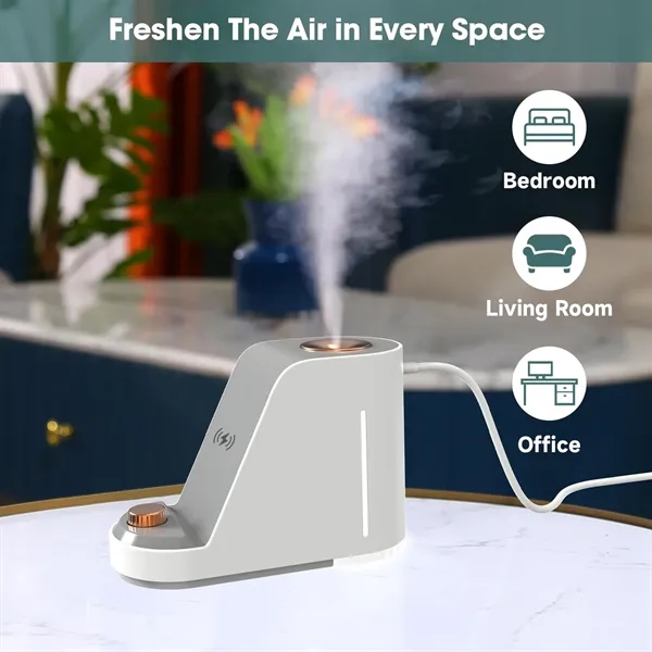 Description:This multi-function humidifier is perfect for bedrooms and offices, combining air humidification with wireless phone charging and a phone holder. It helps reduce dry skin and sinus issues while working quietly. Made from heat-resistant ABS, it includes a Type-C cable with safety features like current control and short circuit protection. The 380ml tank offers up to 8 hours of use, with anti-dry burning probes that stop humidification when water is low. It supports 15W fast wireless charging for compatible phones and features an adjustable night light, making it a winter essential.