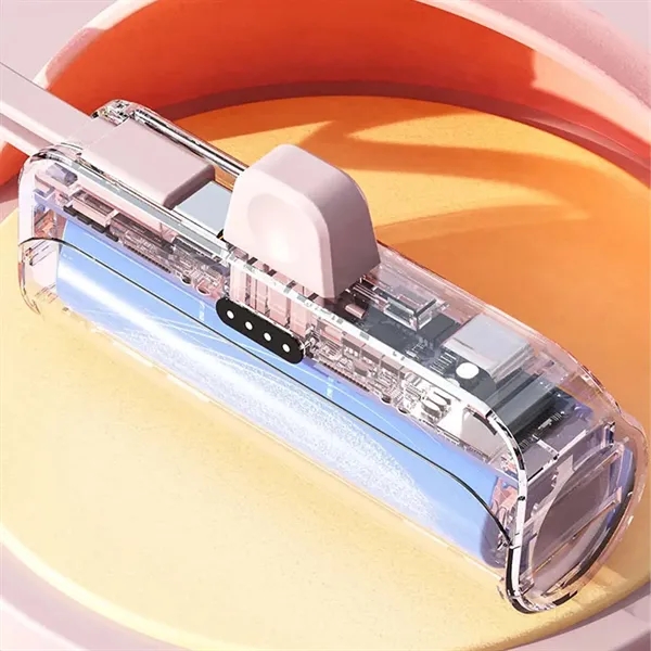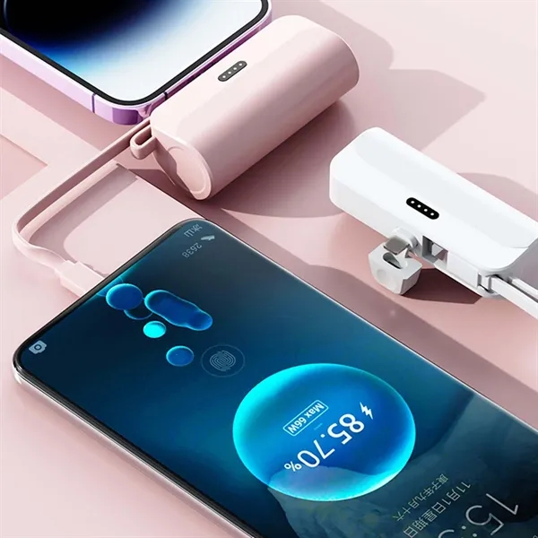 Description:Introducing our Pocket Capsule Power Bank, a sleek and compact mobile charger with a capacity of 5000mAh. This ultra-portable power source is the perfect companion for on-the-go charging needs. Choose from our convenient configurations, including a Type-C plug with an Apple cable or an Apple plug with a Type-C cable, ensuring compatibility with a wide range of devices. For added convenience, we also offer a unique stand version that comes with a built-in phone stand, perfect for watching videos or making hands-free video calls. Both versions are priced the same, making it easy to choose the one that best suits your needs. With its stylish design and reliable performance, our Pocket Capsule Power Bank is the ideal choice for anyone looking for a convenient charging solution.