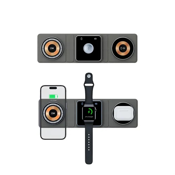 Description:Transparent wireless charging coils, 3-in-1 wireless chargers for phones, earbuds and watch, travel accessories freeing you from a jumble of charging cables, or decorate your workspace with style.Just place your multiple devices on the charger station, enjoy fast wireless charging. After many extreme tests, we use high-power charging chips and world-class electronic components to ensure the quality of the phone charging station,and an 18W equipped adapter, it takes about 2-3 hours to give your smartphone, watch, and earbuds a full charge.Indicator shows you if there is an unsafe object on the charging pad. This red LED Indicator also works to show if devices are being charged or not. If the red LED is on, re-align your device with the charger.