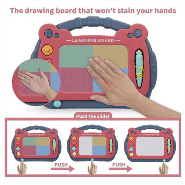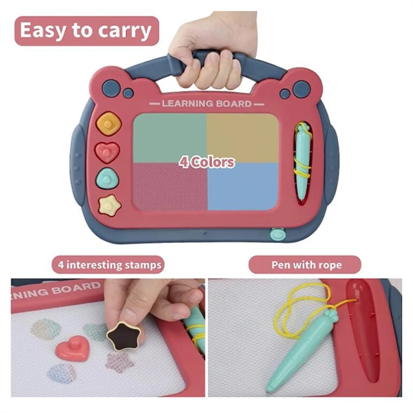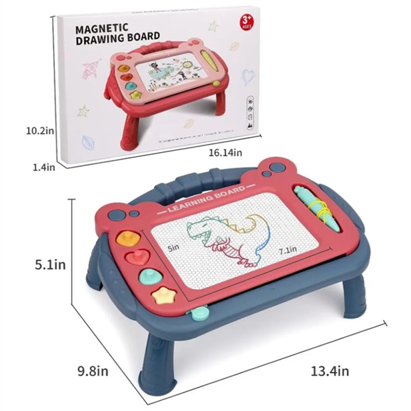 Description:This magnetic drawing board for toddlers 1-3, Color erasable doodle writing pad is made of high-quality and safe raw materials. The drawing board has four color ranges. Only a special magnetic pen can paint, It is a pen that will not stain clothes and walls. Move the board eraser below to easily wipe the board clean, which can be recycled for a long time. Magnetic pen with string, not afraid of losing it. 4 stamps of different shapes can be printed with 4 cute patterns. The legs of the magnetic drawing board can be detached, and all four legs are installed to become a drawing board table. It can be placed obliquely by installing two table legs. It can be placed flat on the table without installing the leg drawing board. KEYWORDS: Easter Toy Girls Games Arts, Crafts Boards Mechanical.