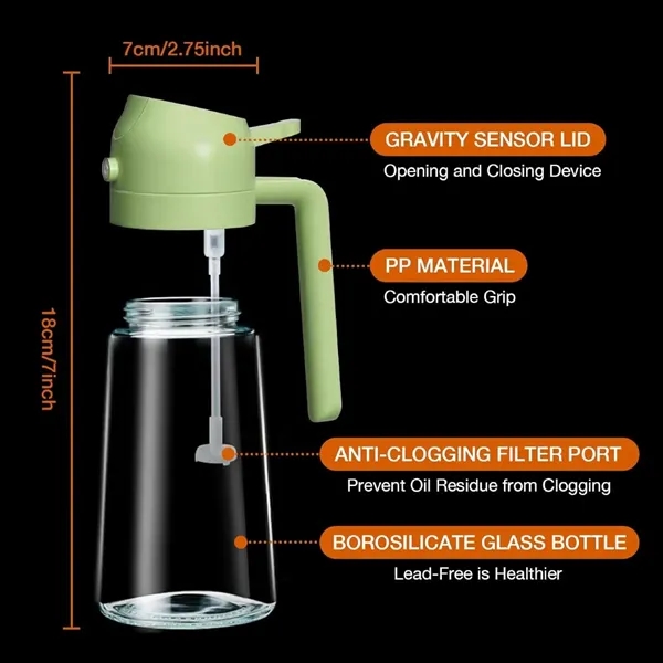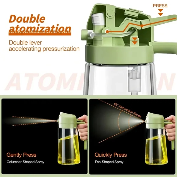 Description:This 2-In-1 Oil Dispenser And Sprayer Allows You To Pour Or Spray Oil With Ease. The Flip-Top Button Enables Precise Pouring, While The Spray Button Ensures Even Misting For Healthier Cooking. Designed With A Leak-Proof, Anti-Drip System, It Prevents Messy Spills And Oil Residue. The Airtight Lid Keeps Oil Fresh, Moisture-Proof, And Bug-Free When Not In Use. Made Of Food-Grade Materials, This 16oz Glass Oil Bottle Is Perfect For Cooking, Grilling, Baking, And Salads. Sleek, Durable, And Easy To Use, It Supports Custom Logo Printing, Making It A Great Kitchen Essential Or Gift Option.