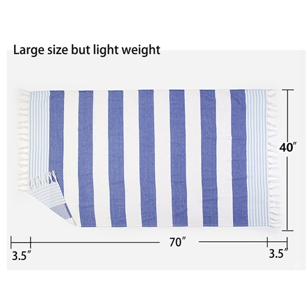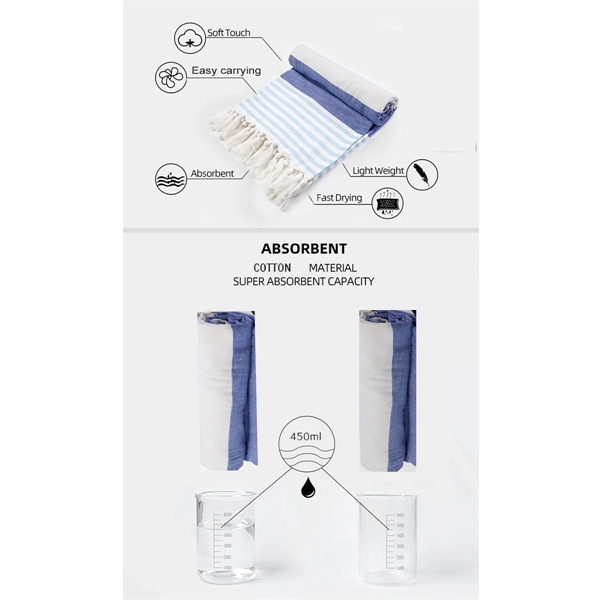 Description:Make your beach trip a perfect one with this beach towel! Measuring 40 x 70 and made of cotton, this product is soft, comfortable, and free of harmful chemicals or substances. While super absorbent and quick drying, this item makes for the perfect beach accessory after a day of swimming. When you’re finished, simply fold it up and store it in any bag or backpack. Additionally, this towel can also be used as a picnic blanket, gym towel, yoga mat, and so much more. Make a splash at your next tradeshow giveaway by ordering now!