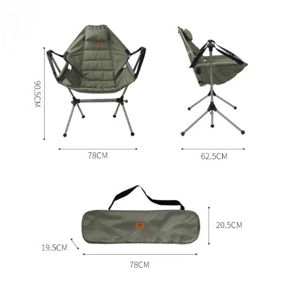 Description:The outdoor rocking chair with pillow is made of high quality aluminum alloy bracket and water resistant oxford fabric,wear-resistant, aging-resistant and tear-resistant, breathable and comfortable. It could bear 330 load. With storage pocket, fold to storage, compact and lightweight, easy to carry. Foldable aluminum alloy pole with structure enables quick set up and fold down.Ideal for tailgating, mountaineering, motorcycling, hunting, park, BBQ, road trip, adventuring and anyone looking for light travel without the bulk.The out door chair with non-slip design, it’s a decent holiday gift for families and friends.Your logo is welcome.