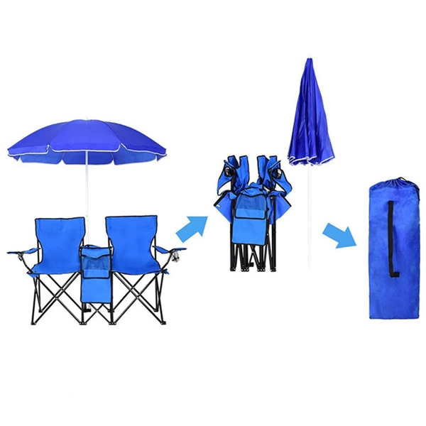 Description:It’s made of nylon and comes with a handy carrying case. The middle table is equipped with two side pockets. One is a mesh pocket,the other is an opaque pocket.Umbrella is removable.Each chair has a 250lb weight capacity, supported by High-density PVC and steel framing construction, chair with breathable heavy-duty Polyester Fabrics, Umbrella with 210D Polyester Fabrics. Upgrade Folding Outdoor Chair with Removable Umbrella is ready to use at the park, at the beach, in your backyard, or at your campsite. Your logo is welcome.