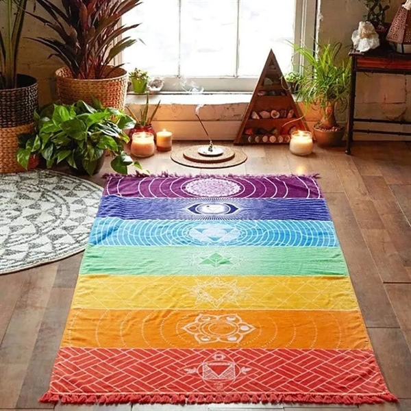 Description:Square rainbow shawl make from Polyester. Measurements: approx 75x150cm/29.5x59Inch.Perfect for all yoga practices (Hot Yoga, Hatha, Vinyasa, Iyengar, Ashtanga, Bikram, Kundalini, Yin Yoga, Restorative), Pilates, Meditation, Breathwork. beach towel not only can be used for decoration, can be used as a shawl,can be used as a beach cover up, tablecloth and so on, great mat for travel Machine Washable. Machine wash separately in cold water cycle and do not use bleach or softener. It will stay durable and long lasting.
