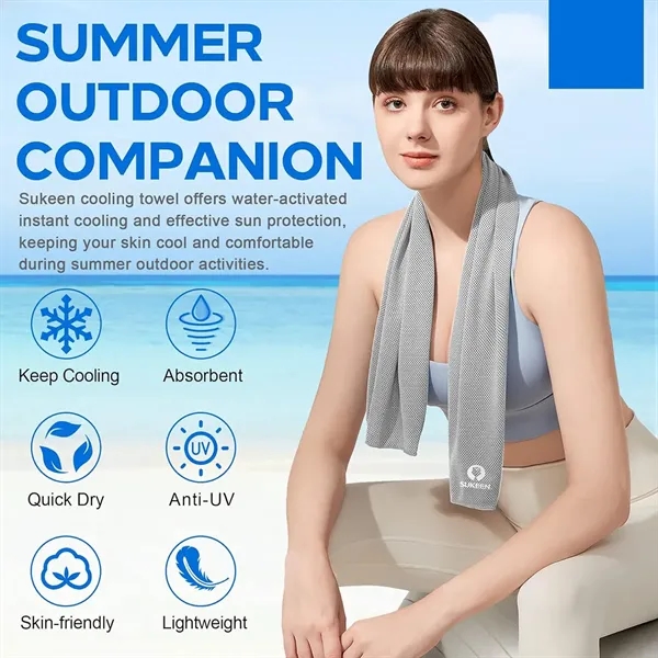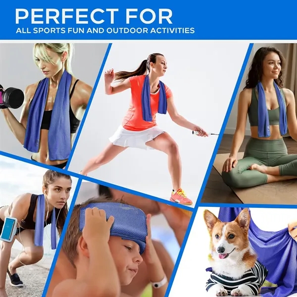 Description:Our cooling towel are woven by 100% soft microfiber,mesh structure is easy to activate the cooling towel by soaking, wringing out and snapping it for 3-5 times.It stays chilled at least 2 hours and ensure body temperature below 30 degrees.With the size 39.4 x 11.8 inches/ 100 x 30cm,enough long to cover your shoulders and arms at the same time. It is silky soft despite dry or wet.With the waterproof plastic pouch, it’s easy to carry the chilly towel on a rock climb, golf trip, corssfit training, etc.A built-in clip design, which you can attach it to your bag belt. Tie it on your neck and it plays like chilled scarf, which is tailor-made for athletes, sports fans, body builders in gym, workers at high temperature and pets.Your logo is welcome.