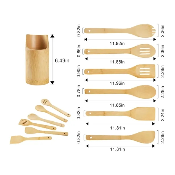 Description:Upgrade your kitchen with this eco-friendly bamboo kitchen utensil set, designed for cooking, baking, and meal preparation. Made from natural bamboo, these utensils are lightweight, durable, and safe for non-stick cookware. The set includes a 7 pcs variety of spoons and spatulas, with a Bamboo canister. perfect for mixing, stirring, flipping, and serving. The ergonomic handles provide a comfortable grip, while the included bamboo holder keeps your kitchen organized. Whether for home cooks, professional chefs, or eco-conscious consumers, this premium bamboo utensil set combines functionality, sustainability, and style. You can choose any spoon or shovel to form a set.