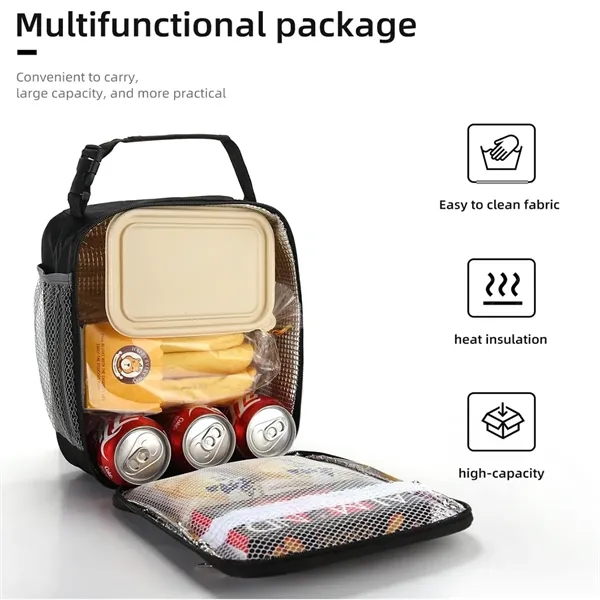 Description:Keep your meals fresh and convenient with this insulated lunch bag. Designed for work, school, and travel, this bag features a durable exterior, a spacious insulated interior, and a sturdy handle for easy carrying. The zippered front pocket provides extra storage for utensils and napkins, while the side mesh pocket holds bottles or small essentials. Lightweight and stylish, this lunch bag is perfect for corporate giveaways, promotional events, and employee gifts. Lunch bagLunch bag features: lightweight and easy to carry. Insulated lunch bag exterior made of fine polyester fabrics, Strong toughness, not easy to break.The inside of the lunch bag is made of multiple layers of thickened insulated aluminum foil, which not only keeps you warm and fresh, but also cold.