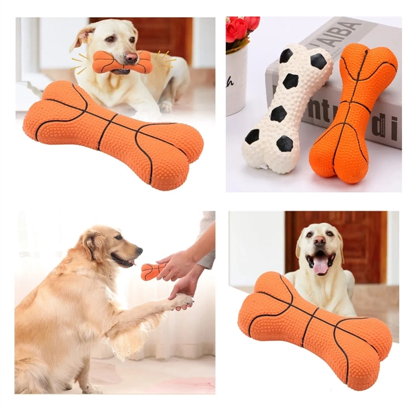 Description:This toy is made of soft latex material, which will not break the dog’s teeth when biting the toy, making it safer and healthier.Designed with basketball football bone shape to attract pet’s attention to reduce pet’s loneliness. It is good for dental health, cleans teeth when playing, prevents dog from biting other things.Light weight, small size make it a portable, very easy to move dog toy.Bright color design can make your dog a good chew toy for dogs.When your pet chews it, it can make sharp sounds,which can train pet and make them smarter.Mainly to avoid dog destroying the environment, reduce the loneliness of the dog.Interactive dog toy can be a companion for your dog. With this toy, dog will entertain for hours and promote bonding between pet parents and puppies.