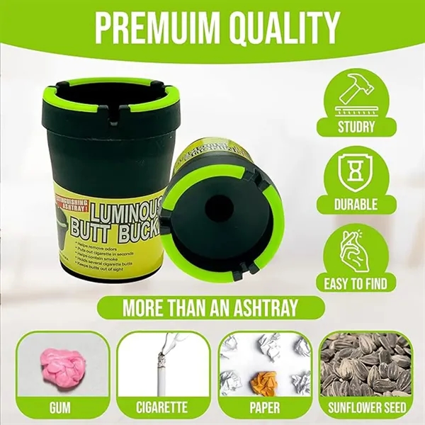 Description:Keep your space nice and tidy while smoking! Our stub out cup-style cigarette ashtray is self-extinguishing, helping to remove odors and contain smoke. Measuring 4.25 tall, it’s made from durable, non-flammable hard plastic. The lid is easy to remove for emptying and cleaning. Designed to fit most auto cup holders, it accommodates both fixed and pop-out holders in cars, trucks, and even at home or the office. Portable and compact, it’s perfect for the beach, deck, or patio. This versatile ash bucket can also be used as a car garbage can for gum, paper, or scraps.