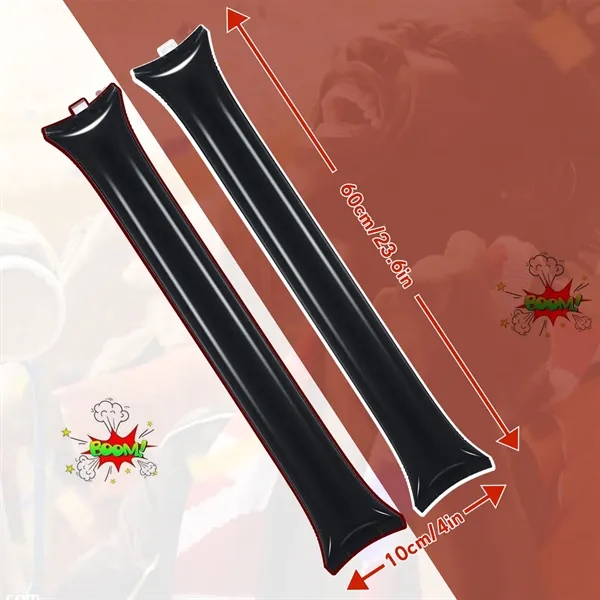 Description:Liven up any event with this colorful, inflatable cheering stick! Great for sports games, parties, and more, this thunder stick comes in assorted colors and makes a loud clapping sound when hit together. Made from plastic, this inflatable product is perfect for cheering on your team or adding fun to celebrations. Add your company or organizational logo, brand name, or message to customize. Add more energy to your next promotional event and order now!
