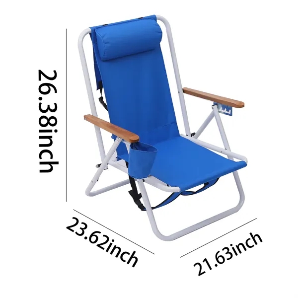Description:The seat height and sturdy arms make it easy to get in and out of if you are tall,heavy,or have back or knee issues.It is friendly for seniors and older people.The built-in phone & cup holders and opener free your hands while fishing,hiking,traveling or watching sporting events,and the 100% polyurethane foam pillow.High Seat Oversized Beach Chairs for Adults:The 5-Position Reclining with High Back Beach Chair provides you an ultimate comfortable seating experience.Easily secure the armrest to adjust the back in an angle you like, and relax and enjoy the breeze during your journey.The sturdy lightweight aluminum with powder coating construction affords up to 500 LBS(227KG)weight and the portable beach chair weights 11.3 LBS(5.16KG).The 600x300D Oxford Cloth & 200g mesh has great strength.