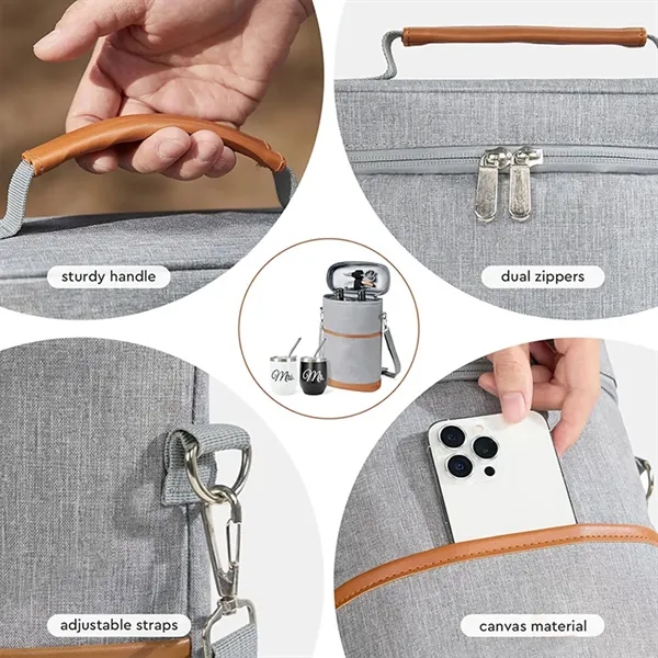 Description:This insulated wine tote bag is designed to carry and protect your wine bottles with ease. With dimensions of 14.56×8.86×4.33, it comfortably holds multiple bottles and keeps them safe during transport. The interior features a special heat insulation material that reflects external heat, maintaining the ideal temperature for your wine for extended periods. Made from durable canvas with an insulated interior, this tote bag ensures your wine stays fresh and protected. It’s an ideal gift for wine lovers, perfect for picnics, gatherings, or any occasion.
