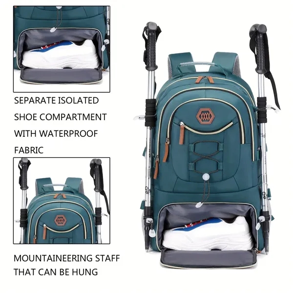 Large Capacity Travel Hiking Backpack with Shoe Compartment