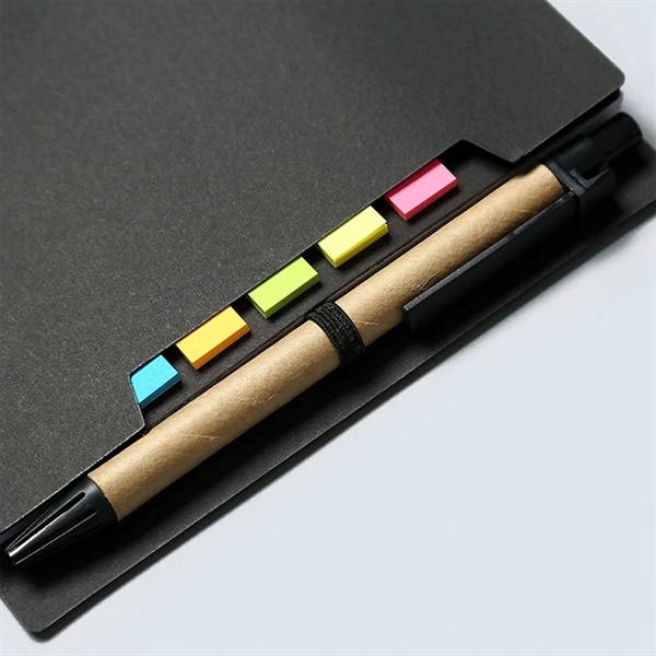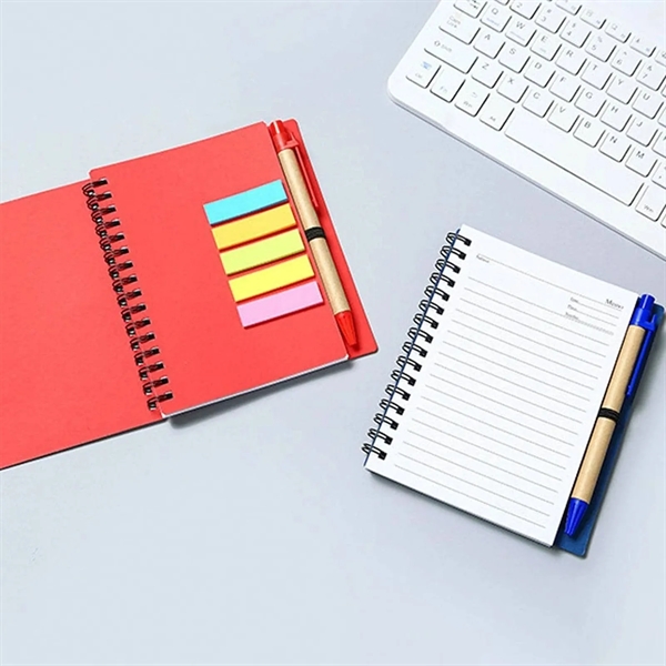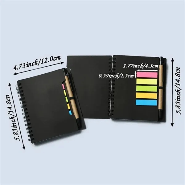 Description:Showcase your brand with our versatile spiral-bound notebook featuring sticky notes and a ballpoint pen. Measuring 5.71 x 4.56, this notebook combines functionality and style with a durable Kraft paper cover and a 60-page refillable pad. The included ballpoint pen and sticky notes make it perfect for jotting down notes and reminders. Customizable with your school, sports team, organization, or company logo, it offers a practical and attractive way to promote your brand. Smooth writing paper and a convenient pen design make it a standout giveaway.
