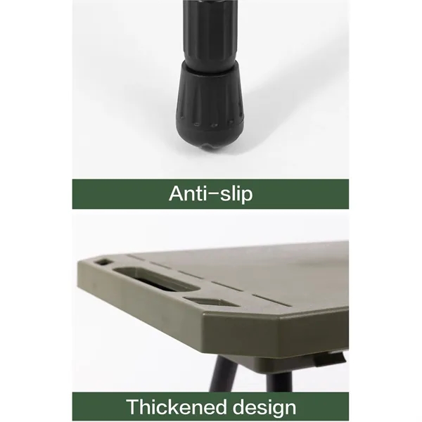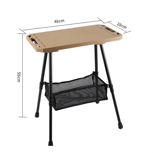 Description:This versatile table is constructed with a high-strength ABS material top plate, an aluminum alloy frame, and a polyester storage bag with an additional storage net, making it durable, lightweight, and perfect for various outdoor activities. Measuring 18.9 x 11.0 inches with a height adjustable from 15.0 to 22.8 inches, the table can be customized to suit your needs, while the 19.3 x 11.8-inch storage bag provides ample space for essentials. The table is quick and easy to set up and disassemble, and it comes with a dedicated storage bag for easy carrying. Ideal for barbecues, camping, fishing, and other outdoor activities, this table enhances your outdoor experience.