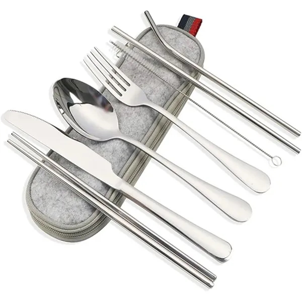 Description:High Quality The portable picnic cutlery set is made of stainless steel, well polished and built sturdy, durable and washable, easy to clean and dishwasher safe.pieces travel cutlery set, includes knife, fork, spoon, chopsticks, cleaning brush, straight straw, curved straw, carry case, suitable for daily use, travel, camp, school or office. It’s an eco-friendly way to use this reusable travel cutlery with chopsticks.The modern flatware set is full size, solid but lightweight, making it easy to carry. Suitcase and bag make it easy to store the set. Very easy to store or hang in backpack / handbag / backpack. A must have for daily use, outdoor camping, cooking, hiking, picnic, traveling home and eating on the go.