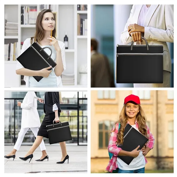 Description:zipper file handbag is made of premium oxford fabric, which is soft, durable, tear resistant and waterproof.Our briefcase is designed with two pockets. The main pocket can hold your laptop, notebooks, documents and other stationary. Side pocket can help you keep all your small items safe yet easily accessible.With large storage space and excellent quality, this business document bag is great for various occasions like business meeting, office, school, home, travel or daily use.This functional zippered file handbag is waterproof, which can protect your files from getting wet.And the handbag is only 165g, lightweight and handle design is convenient for you to carry.Package includes 2 pack zippered file bags in black and navy blue.