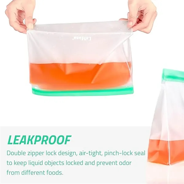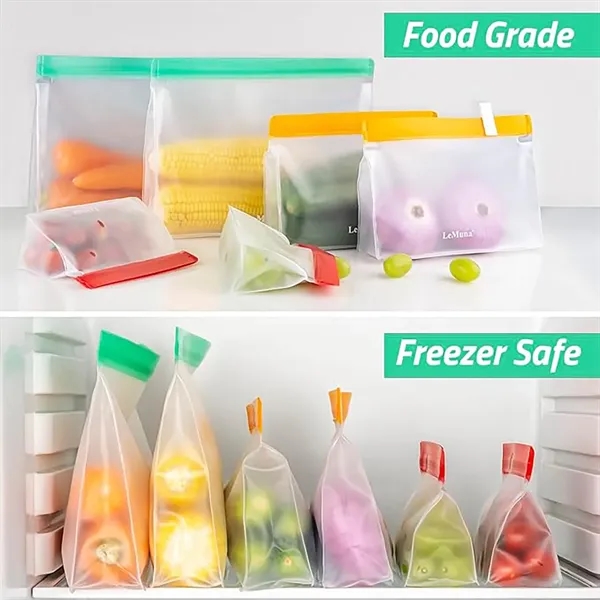 Description:These reusable silicone storage bags are heat and cold resistant,temperature resistant-22F-105F(-30C–+40C).The silicone food bags used to freezer-eliminates freezer burn,protect your food from discolored dry spots,perfect for freezing meat,fish and vegetables.The clear storage bags are easily take out the items you need from the refrigerator or other places without opening the freezer bags,keep the space where you storage food clean and save you time. Three Size reusable freezer bags meet all of your need,three-dimensional design that can stand up in the fridge which will make your fridge organized and larger capacity than flat bags can storage meats,meal,vegetables,frozen foods,cereal,fruits.