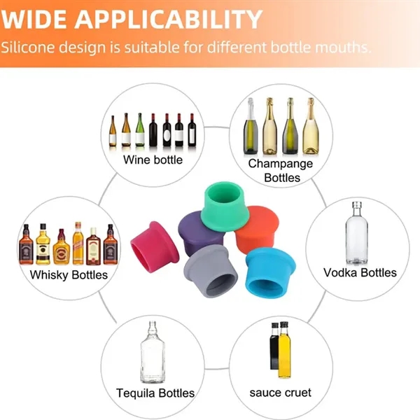 Description:These wine stoppers are designed to keep your wine fresh for weeks. The cap provides an airtight seal that is leakproof on your wine bottle. You can throw away that cork. These caps are great for shielding your beer bottle when you are outside on your patio. Made of premium quality silicone material that is durable and will last a lifetime. 6 different colors make you easier to distinguish beverage bottles. Hand-wash or throw them in the dishwasher as many times as you need. Will fit standard sized wine bottles & beer bottles. Perfect wine stopper, beer cover, or wine gifts! The highly durable and flexible design makes the wine rubber stopper easy to remove.