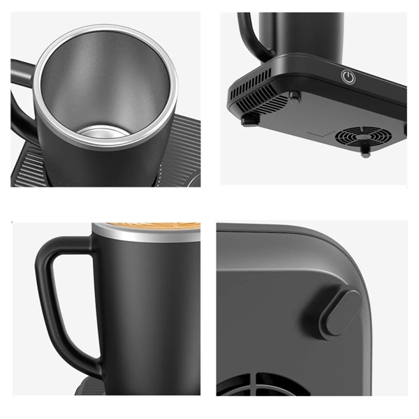 Description:Not only heats up to 131F but also cools beverage or drinks with temperatures as low as 40F, you can change between cold and warm randomly. Only need to place your phone on the Pad to charge, 15 W fast charge and it is suitable for phones and devices that support Qi. It is made of ABS+food grade PP material base, due to the high-tech materials make the coffee warmer heat-resistant and fire-resistant. Recommend to use the 12OZ mug included, upgrade mug will not burn your lip. When you are hot, cooler cup to bring you a refreshing moment. When you need warmth, you can always have a cup of hot coffee; When your phone needs charging, you just put it on it. This good companion with three in one functions will be your best choice!