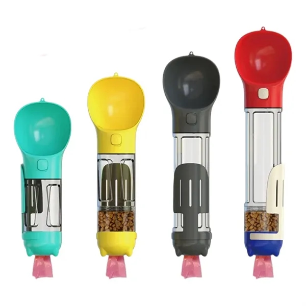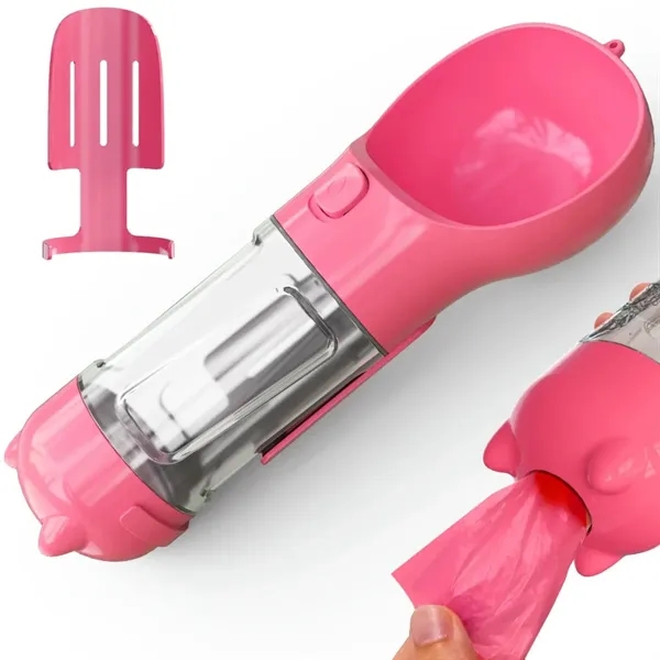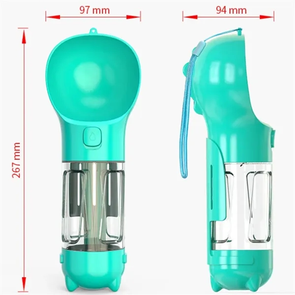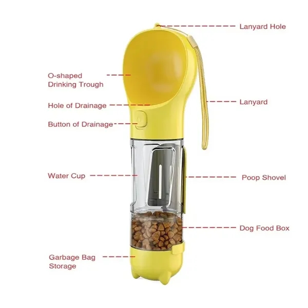 Description:This Pet Drinking Feeder made of ABS material, sturdy and durable. It integrates multiple functions,includes drinking feeder, food box, trash bag storage, and a small scoop. Features a large button for easy water flow control during feeding. Easily return unused water to the container by pressing the water key. With a one-key open/lock water system, you can fill and stop water with one hand, it wont wet your dog. Our pet water bottle is designed with a silica gel seal ring and lock key, ensuring no leaks. You can easily carry it in your backpack or hang it on your hand with a sling rope. Available in black,turquoise blue,red,pink and yellow. Customized is available.