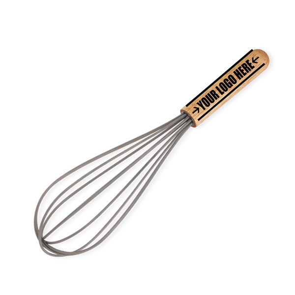 Description:Every kitchen needs a whisk that can be used on all surfaces, will not scratch bowls, or pans.You will wonder how you ever went without it! Not only is this silicone whisk practical, but it is also aesthetically pleasing as the neutral tones of the wood will complement your other preparation tools.Using Laser Printing, you can showcase your brand name, logo or any other message and use this product as a giveaway at tradeshows, fundraisers and many promotional events!