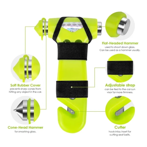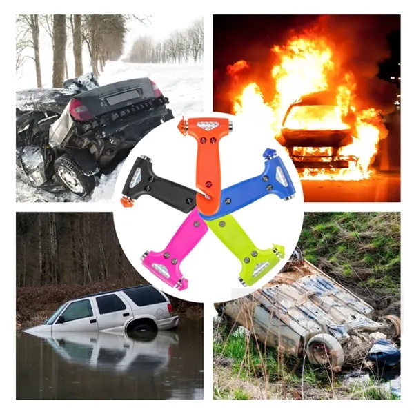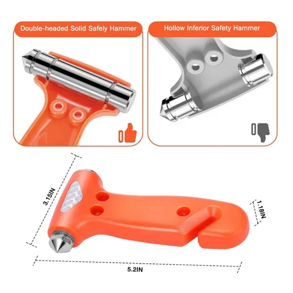 Description:Designed with two sturdy hammer heads, our tool ensures a powerful strike that quickly breaks windows, providing a critical escape route during a crisis. The cutter features a guard blade that quickly cuts through stuck seatbelts, while its protective shield prevents accidental injuries or surface scratches. Made from materials that withstand rigorous use, this safety hammer guarantees longevity and reliability when you need it most. More than just a window breaker, the compact design includes a secure grip handle for easy operation in emergencies, ensuring effective use even under pressure. Lightweight and compact, it can be easily stored in your car’s glove box or door compartment. Have a safety tool at the ready to give you confidence and security on every trip.