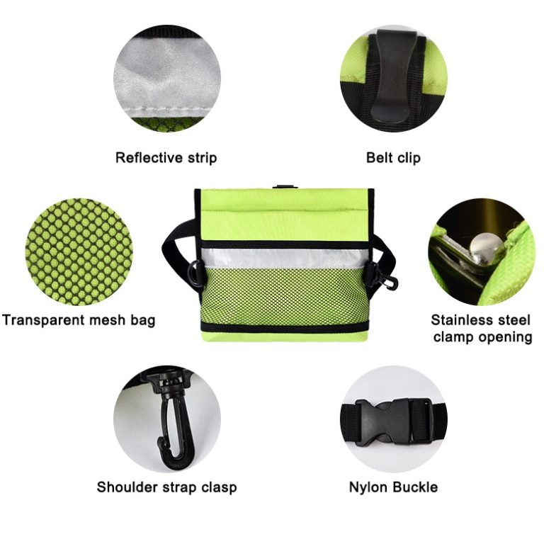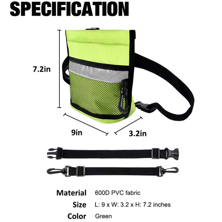 Description:Dog training pouch for small to large dog,holds toys,food and accessories security with drawstring.Keep your smartphone, earphone, keys, money or snacks safe and bag is convenient to take. The two handy zipper bag and mesh bag on the treat bag for your stuff. The dog treat pouch comes with a bone printing poop bag which can store in the built-in poo waste bags dispenser,and a bottle mesh bag on the side. Size is large enough to store things for a long walk or traveling,training a new puppy or daily walk.