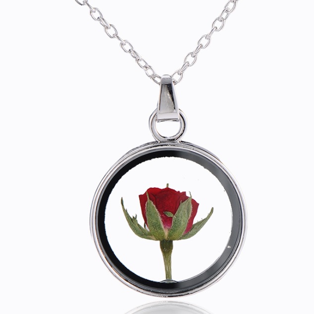 Description:This fashion round real dried flower glass necklace is European and American popular accessories. Rose necklace is the best choice for Valentine’s Day gift. Let this Stylish round rose necklace as your next promo.WELCOME TO INQUIRE.