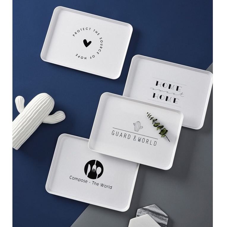 Description:Simple small tray is made of PP material.it is health and environmental protection, simple pattern design, combined with Nordic fashion elements, thick and durable, convenient for your life.It is suit for hotel,home decoration,bar,restaurant.etc.Four patterns:Cactus, Love, Home, Tableware.logo can be customized. Let this Simple small tray as your next promo.WELCOME TO INQUIRE.