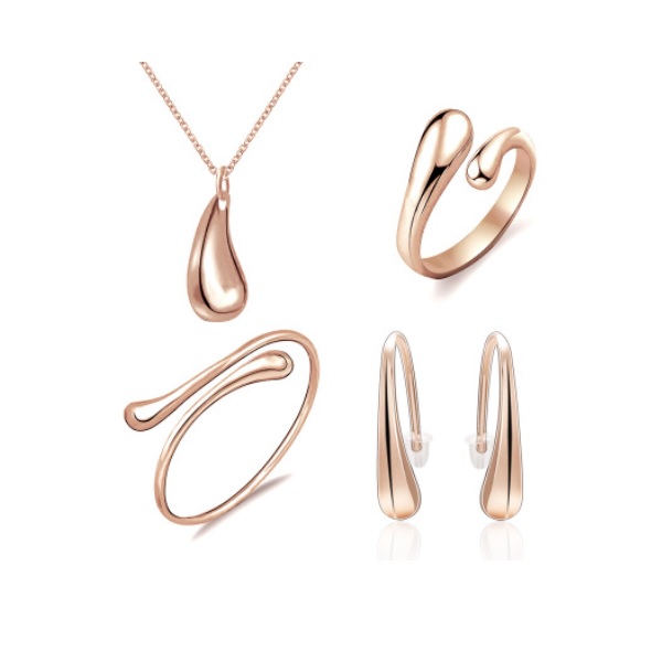 Description:This water drop style accessory set is including Exquisite bracelet, fashion electroplating necklace, ear hook and ring. Made of copper. OPP bag packing, box packing need to pay extra. Let this water drop style accessory set as your next promo.WELCOME TO INQUIRE.
