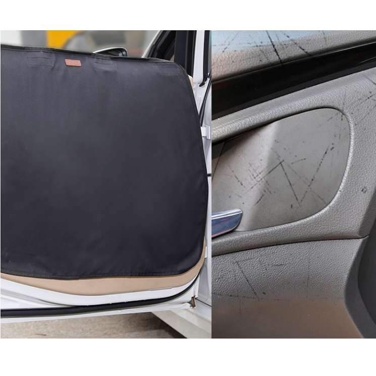 Description:Protects your car door from permanent scratches.(The size of tab is 26X21.3INCH) You can roll down and up the windows when installed with the self fastening tapes. Stays in place and no worries about scratching the window. Includes 2 covers, one for the left door and one for the right. one size fits all. You will never have to worry about your dog making a mess ever again. The car door protector for pets will cover your car door and keep it clean and safe. The door cover will protect your car from pet scratches and dirt. Take your dog for a ride with no worries! Waterproof and No PVC, safe for your pets. Machine washable.