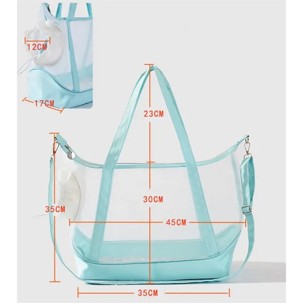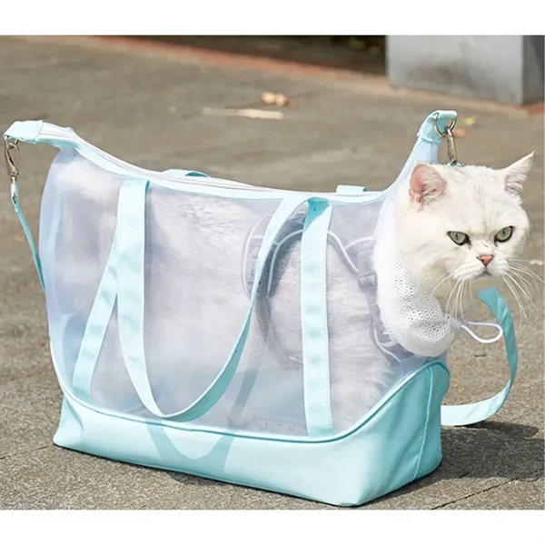 Description:This transparent nylon mesh cat carrier is designed for convenient and safe outdoor travel with your feline friend. Its portable and foldable design makes it easy to carry and store, perfect for pet owners who love to take their cats on adventures. The mesh material ensures ample airflow and visibility, keeping your cat comfortable and stress-free during trips. The sturdy handles and foldable structure make it a practical choice for everyday use or longer journeys
