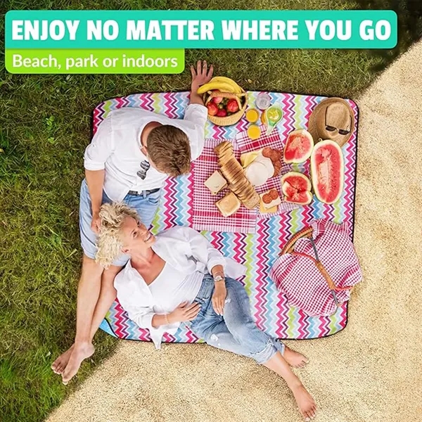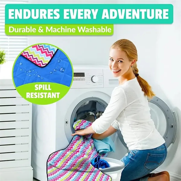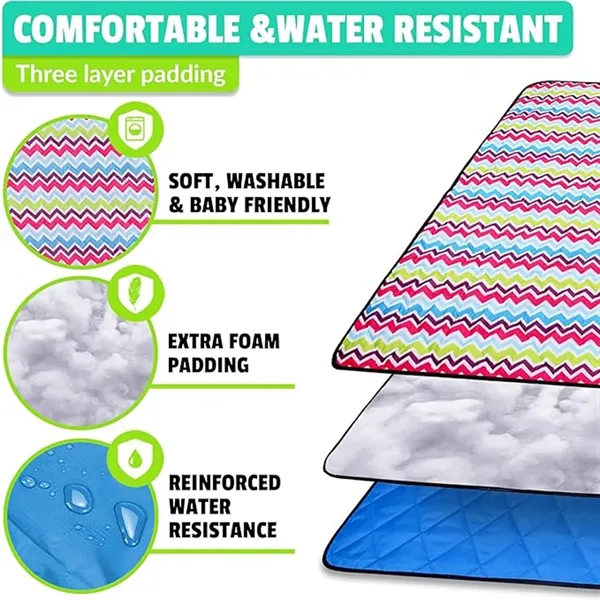 Description:This large 55 x 70 polyester blanket is perfect for the whole family. It’s durable and machine washable, with a resistant inner lining that wipes clean easily and withstands outdoor surfaces like grass and sand. Baby and kid-friendly, the blanket is Phthalates and BPA-free with no chemical smell, making it safe for indoor or outdoor play. It folds into a lightweight, compact zippered tote with a pocket and shoulder strap for easy carrying. Ideal for outdoor concerts, festivals, stadium seating, or even as a dog seat cover or indoor play mat.