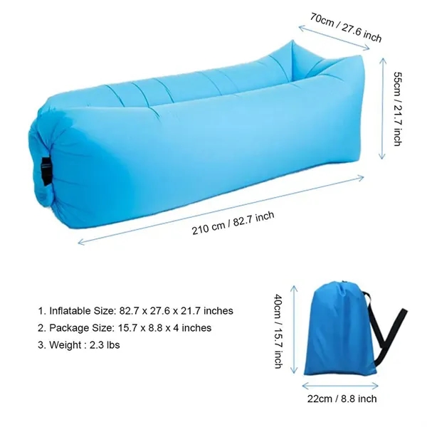 Description:Experience ultimate relaxation with our inflatable loungers made from high-quality Nylon Ripstop, durable for use on grass, sand, or any surface. Easily inflate it anywhere—no equipment needed! Just catch some breeze or move around to fill it with air. Rolled out, the lounger measures 90 x 27 (230 x 70 cm), and when inflated, it can expand up to 33 (84 cm) wide. Ideal for outdoor activities like camping, beach trips, or festivals, its dual-chamber design ensures maximum comfort and support.