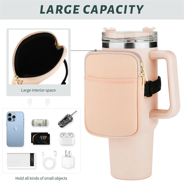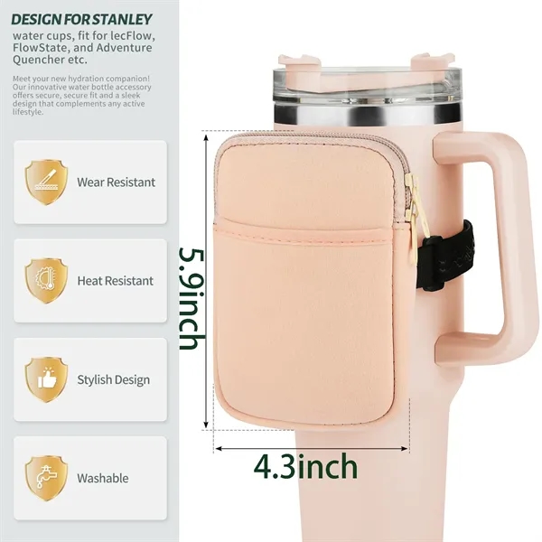 Description:Here’s a brief overview of our water bottle bag: Available in two styles-with or without a front pocket-this convenient accessory is the perfect companion for your active lifestyle. Measuring 5.9 x 4.3, it fits most water bottles and comes with an adjustable strap for a secure fit. Inside, you’ll find plenty of space for essentials like earphones, keys, and more. Made from high-quality, durable materials, it’s built to last. Plus, it keeps your belongings off the ground and your hands free during exercise. Whether you’re at the gym, out for a run, or just on the go, this bag is your ideal partner. And, as a thoughtful gift for friends, family, or colleagues, it’s sure to be appreciated. So don’t wait-choose your style and enjoy the convenience and style of our water bottle bag today!