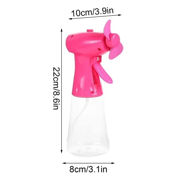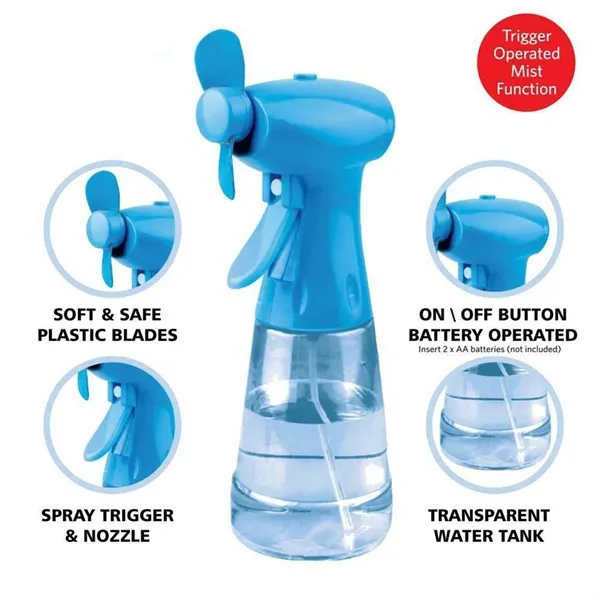 Description:Beat the heat anywhere with this soothing fan spray bottle! This portable fan is perfect for outdoor activities, from gardening to camping. Enjoy cooling relief on the go with its cordless design and battery operation (AA batteries required). The sturdy base allows for tabletop use, while the lightweight design makes it comfortable to hold. Available in a variety of vibrant colors, this fan is a fun and practical way to stay cool on any summer adventure. Enjoy a refreshing breeze wherever you go!