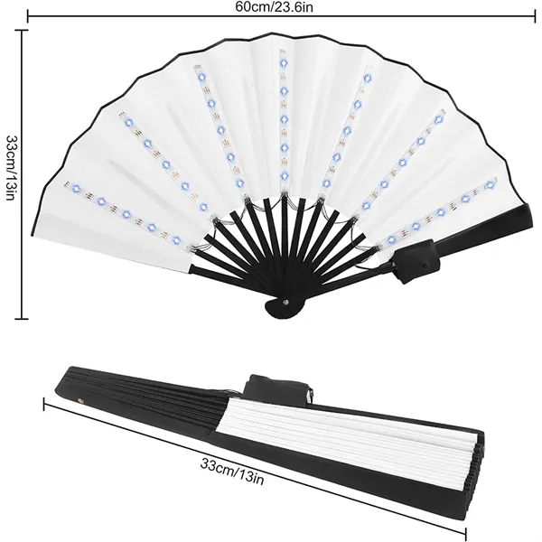 Description:Our Vintage Chinese Style Handheld Folding LED Fan combines traditional Chinese design with modern LED lights, creating a unique, glowing effect that enhances its beauty. Made from high-quality ABS and polyester silk fabric, this fan is durable, waterproof, and resistant to breakage. Simply flick your wrist to open it, and watch it light up under UV light for a dramatic flair. Compact and portable, it fits easily in your pocket or bag, making it perfect for summer outings. This versatile fan is ideal for keeping cool, adding a touch of elegance to performances, or as a decorative piece for events such as weddings, parties, and cosplay. It also makes a thoughtful gift for any occasion. Rechargeable with a 3-hour charge for hours of enjoyment.