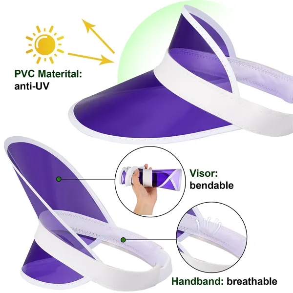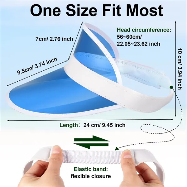 Description:Clear Colored Plastic Sun Visor. Featuring vinyl brim and comfortable adjustable elastic band for a No Headache use.Choose Your Color. From solid color to fun patterns, you make the choice. Grab one for yourself or for a group of friends.Sized about 50 cm – 60 cm or 19.5 inches – 23.5 inches in circumference. Perfect for Men and Women.Perfect for poker night, going on vacation, outdoor sport events , or as party favors. Visor also works for Halloween.From a crazed Bingo player or a winning Jackpot Gambler in Vegas to a fun day at the beach, the sun hat use is endless! * Transparent pieces may contain minor scuffs and scraps due to manufacturing process.