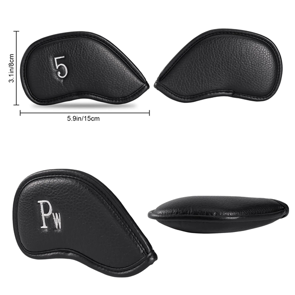 Description:Protect your golf clubs with our high-quality PU leather iron head covers! These black covers with gold numbering are made from thick material to ensure your clubs are well-protected. Waterproof and oversized, they feature numbers on one side for easy identification and a secure fit that prevents them from dropping off. This set includes 12 covers (3, 4, 5, 6, 7, 8, 9, P, A, S, L, L), providing comprehensive protection for your entire set of irons.
